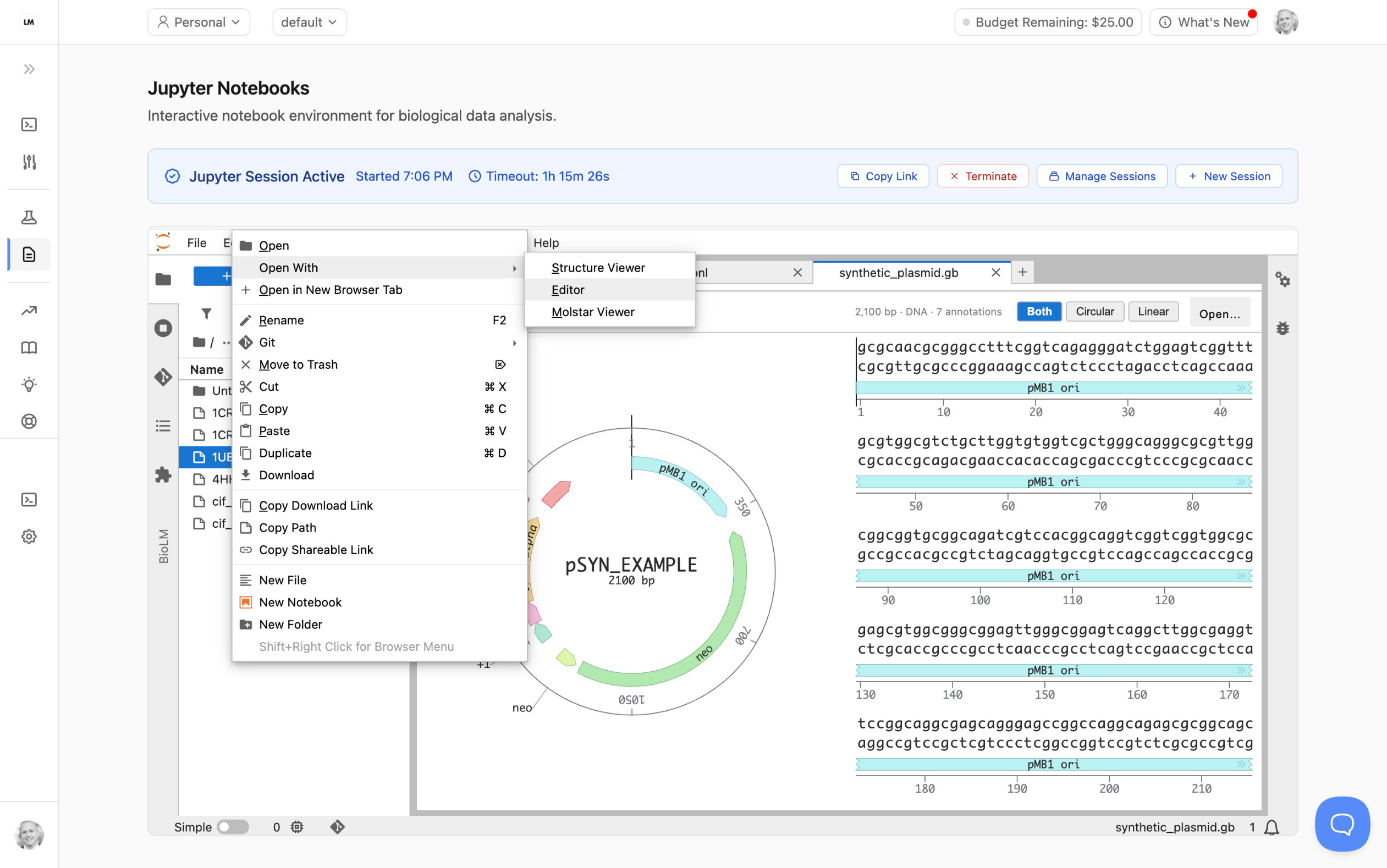You can also visualize many common file formats extracted from the results. Right click on a file to see what Viewers you can open it with, such as the sequence viewer seen in the screenshot below.